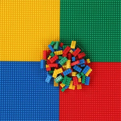 Encourage creativity and imagination with the Tot Tutors Kids 2-in-1 Plastic Building Blocks Compatible Activity Table and 2 Chair Set featuring a play surface compatible with leading national brand building blocks. The 20” x 20”square kids table set comes with 2 chairs, a removable table cover and a mesh storage bag filled with 100 building blocks. Tabletop easily converts to a construction table surface for ultimate building fun. The smooth table cover is ideal for coloring, arts and crafts, board games and whatever else your little one can dream up. Plastic table and chair set is durable yet lightweight and features rounded safety edges in a fun bright color palate. Easy to assemble with snap-together components. Toddler table and chair set is ideal for children ages 3 and up. Assembled table dimensions: 20″W x 20″D x 17″H. Assembled chair dimension: 12″W x 11″D x 18″H. Chair seat height 10″.