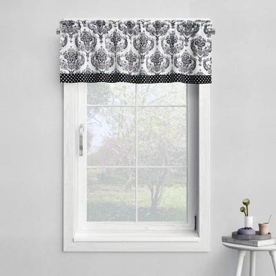 - This Bacati 6-piece Crib Set Includes Reversible Comforter/Playmat (33 x 43 inches), Crib fitted sheet (52 x 28 x 6 inches), Crib Skirt/Dust ruffle (13 inch drop) Diaper Stacker (holds more than 30 newborn diapers), Reversible Long Crib Rail Guard Cover (52 x 12 inches) and Window Valance (15 h x 56 w inches with 1.75 inch Rod Pocket) in fun, colorful and signature prints in 100 percent cotton 200 Thread Count percale fabrics. Designed in United States by Experienced Designers. Many coordinating items available to purchase separately in this Bacati Classic Damask Black/Grey/White Bedding Collection.
