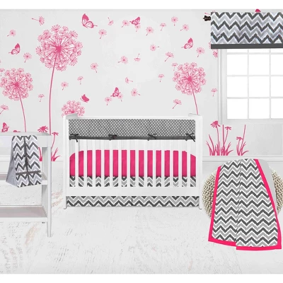 Bacati – Ikat Dots Leopard Pink Grey Girls 10 Pc Crib Set With Long Rail Guard Cover & 4 Muslin Swaddling Blankets