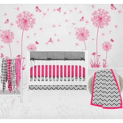 - 8 pc Crib Set with Crib Rail Guard: Reversible Long Side Crib Rail Guard Cover, Cotton Percale Reversible Comforter/Play Mat, Four Muslin Cotton Swaddle Blankets, Cotton Percale Fitted Crib Sheet and Cotton Percale Crib Skirt/Bed Ruffle.