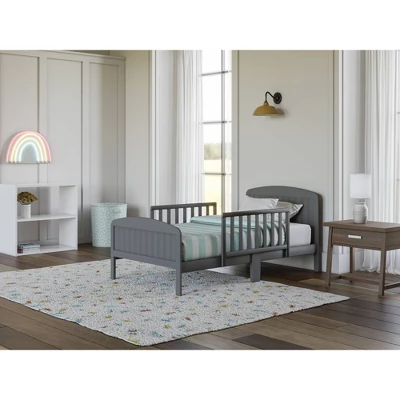 - SAFE AND SECURE—The Harrisburg Toddler provides an exciting next step for your little one with a simple design that emphasizes safety. Two large side rails help prevent your child from rolling out of bed, while providing enough space for them to climb in and out independently.