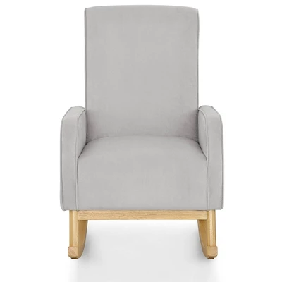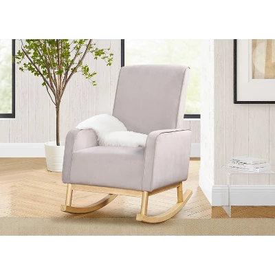 The perfect addition to any space, the Drew Rocking Chair by Delta Children blends timeless and modern design elements. Crafted with new parents in mind, this plush rocker boasts a modern back and sleek armrests with ample room for shoulder and elbow space. Carefully constructed with solid wood runners outfitted with felt bottoms to protect floors, it’s a must-have for any nursery or bedroom. The smooth and gentle rocking motion of the chair will soothe your little one to sleep while giving you a chance to relax. Built to create a sweet sanctuary for you and baby, the Drew Rocking Chair by Delta Children is a must-have for any new parent seeking comfort and style in their nursery.