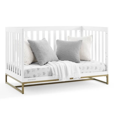 The Jade 4-in-1 Convertible Crib by Delta Children is the new gold standard for modern nurseries with its gorgeous bronze metal base. Stylish and safe, it’s GREENGUARD Gold Certified, which means it’s built to contribute to cleaner air for a healthy home. A standout piece for years to come, this crib features an adjustable mattress support that allows you to lower the mattress height as your baby grows. When your child is ready, its versatile design easily adapts from crib to a cozy toddler bed, daybed and sofa (Daybed/Sofa Rail included; Toddler Guardrail #0094 sold separately). The Jade 4-in-1 Convertible Crib by Delta Children is available in Bianca White and Ebony. Coordinates with the Jade Changing Table (sold separately).