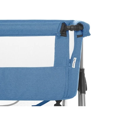 Embrace the early months of motherhood with the Lotus Bassinet & Bedside Sleeper. As a standalone bassinet, its non-bulky frame allows you to easily move it around, ensuring your little one is always nearby. Roll down the mesh side to convert the bassinet into a bedside sleeper – it has 4 adjustable heights, which can accommodate all types of beds leaving no gaps, and is easy on your back. Especially useful if you are nursing, have had a difficult delivery, or simply want your newborn nearby. Assembly is fuss-free. It is loaded with convenient features: mesh sides to view your baby anytime, also ensuring complete breathability. It has a retractable storage basket and an optional removable insect net canopy – keep nasty bugs and curious pets at bay! It makes for the ideal travel companion – it folds compactly into the carry bag provided. Safety is assured – it meets all ASTM standards. The sturdy strap system allows you to easily secure the bassinet to your bed frame. Bassinet’s dimensions are 37Lx22.5Wx44H inches; it weighs 15.85 lbs. It comes with the regulatory 1-inch mattress pad (32.5Lx21Wx1H inches). The product is recommended for babies up to 5 months. Safety Advice: Keep the soft objects and bedding away from infants and do not use them in bassinets/bedside sleepers because they can inadvertently lead to suffocation. Furthermore, bedding has been associated with sudden infant death syndrome.