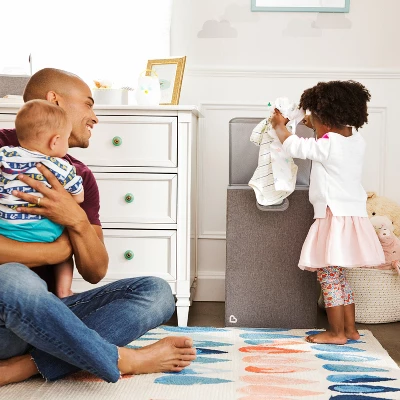 It’s amazing how much laundry babies can accumulate – you might find yourself washing soiled onesters, burp cloths, and pajamas several times a day. The Munchkin Nursery Hamper helps keep all that dirty laundry neatly contained – out of sight, but not out of mind. This large-capacity hamper features a stylish, contemporary design that will fit any nursery or kids’ bedroom decor. Designed to be lightweight for easy transport, this baby hamper has padded handles for comfort and a folding lid that won’t fall in. It also folds flat for easy storage, making this one laundry essential you can’t live without.