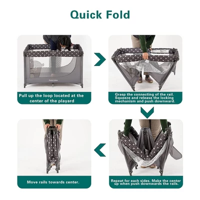 - PORTABLE CRIB: Lull your baby to sleep and give yourself some much-deserved rest as you lay them down in this portable play yard; Color: Grey